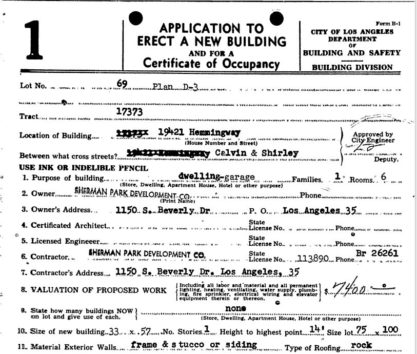 You can see and verify the original building permit with Los Angeles Department of Building and Safety.