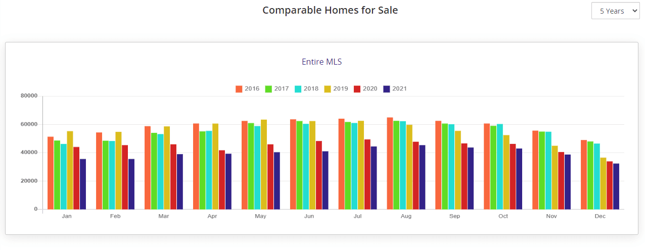 You can see in the first chart that the entire local MLS has a total of 18,645 homes listed as of today (February 3, 2022). That's it! The entire MLS right now. Last February, there were 29,717 single family homes for sale. That represents over a 37% haircut in available inventory year over year and last February was already extremely low inventory levels, historically speaking. As far as historical numbers are concerned, you can see that 2020 and 2021 saw lower inventory of homes listed than any of the prior 4 years going back to January of 2016. Folks, we were already talking about "low inventory" in '16, '17, ' 18, and '19! The problem we're seeing today, if you look at the charts, seems to have started to develop in September or October of 2019 and has progressively gotten worse.