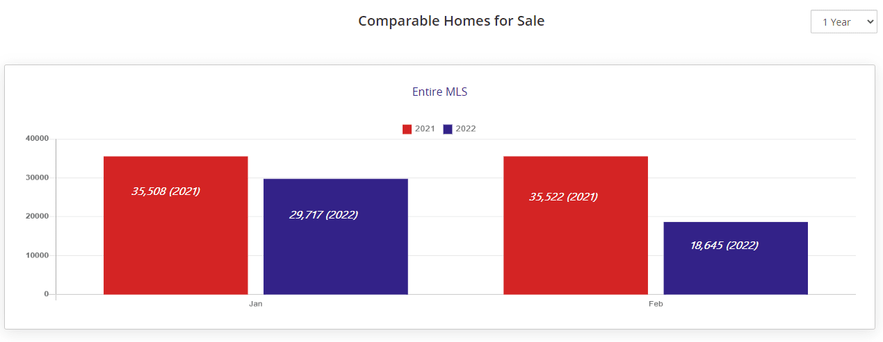 If a "normal" February sees about 40,000 to 50,000 homes on the market, locally, to meet far lesser historical demand, we can see right here in these graphs why homes are now selling for $100,000, $200,000, $300,000 or more over list price. With demand 'through the roof', the current inventory of listed homes isn't anywhere near enough to balance the market. Not even close! I'd actually say that we probably need about 3 or maybe even 4 times the number of homes to be listed than are actually currently listed for sale in order to come anywhere even close to balance.